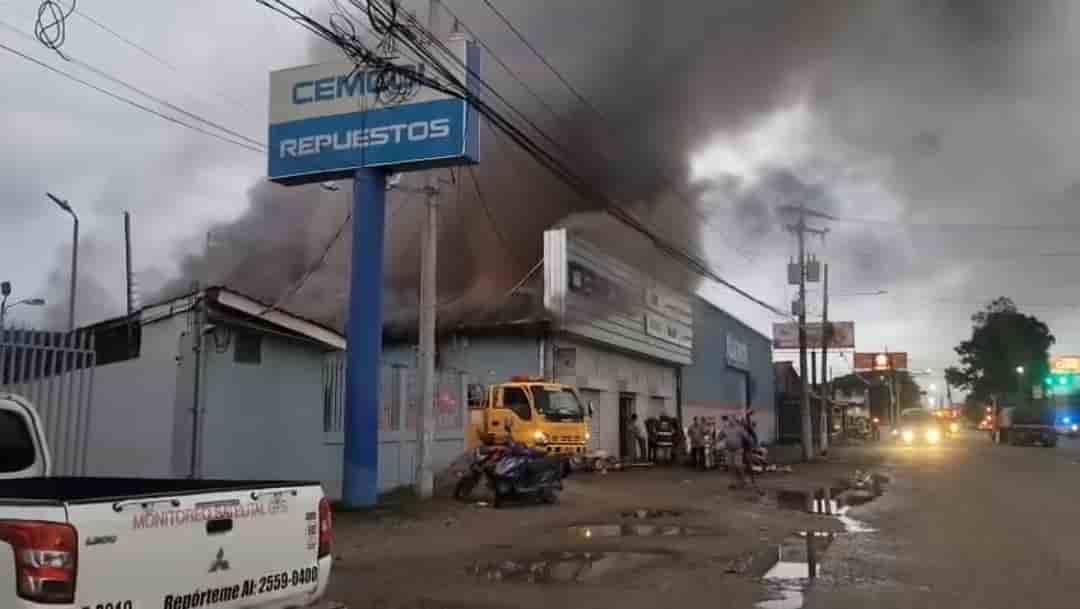 Incendio de gran magnitud consume por completo bodega de empresa de repuestos de equipo pesado en Tocoa, Colón