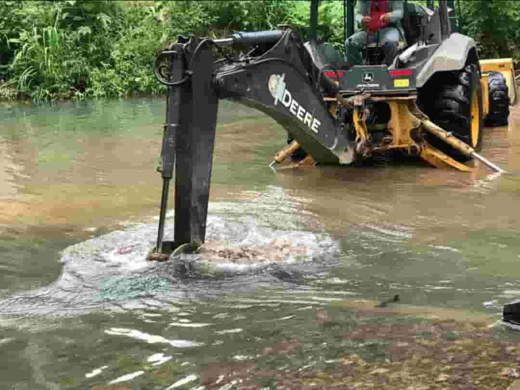 De forma paralela, técnicos trabajan en la desobstrucción de un tubo de 12 pulgadas ubicado también en el sector de Sapote Negro, un punto donde el flujo quedó reducido debido a acumulaciones internas que impiden el paso normal del agua.