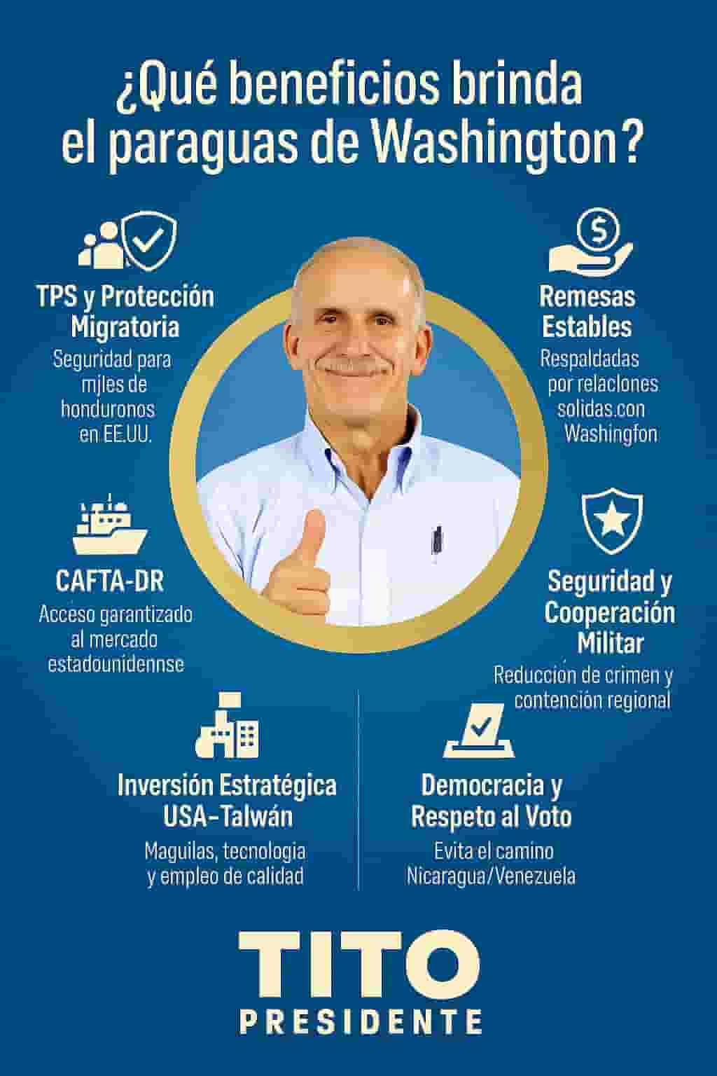 Un día después de que el presidente de los Estados Unidos, Donald J. Trump, sorprendiera al país al expresar públicamente su apoyo al presidenciable Nasry “Tito” Asfura, la campaña nacionalista difundió una pieza informativa que detalla los beneficios que Honduras podría obtener bajo una relación más estrecha y estratégica con Washington.