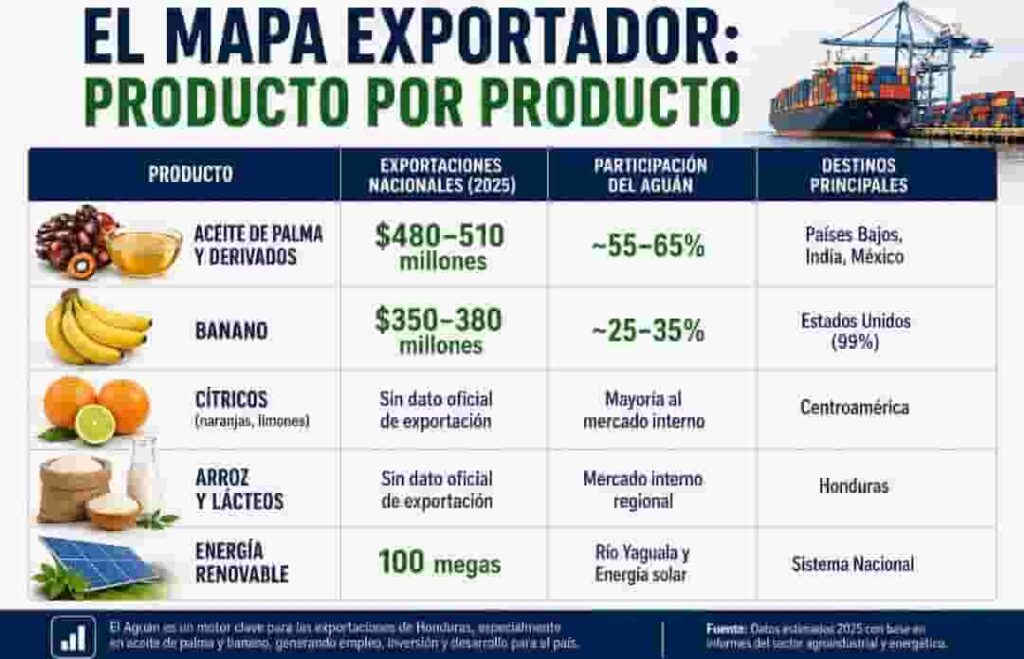 El Aguán sigue siendo una de las regiones que sostiene esa posición, aunque hoy comparte el peso con los valles de Sula y Lean.