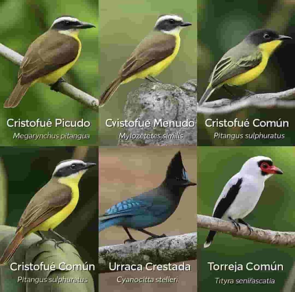 • Su pariente el Cristofué Picudo (Megarynchus pitangua), más reservado, que prefiere los árboles altos y el follaje denso.