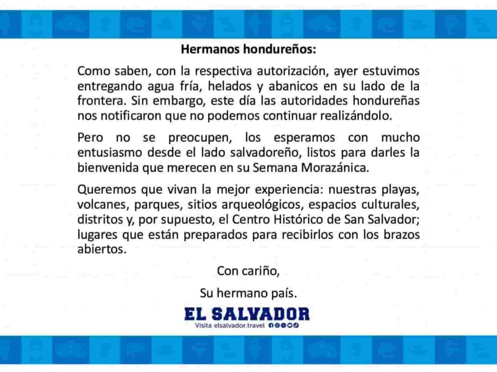Mientras en Honduras se critica la decisión gubernamental, en El Salvador el mensaje oficial buscó suavizar la polémica resaltando la hermandad y la hospitalidad hacia los visitantes.