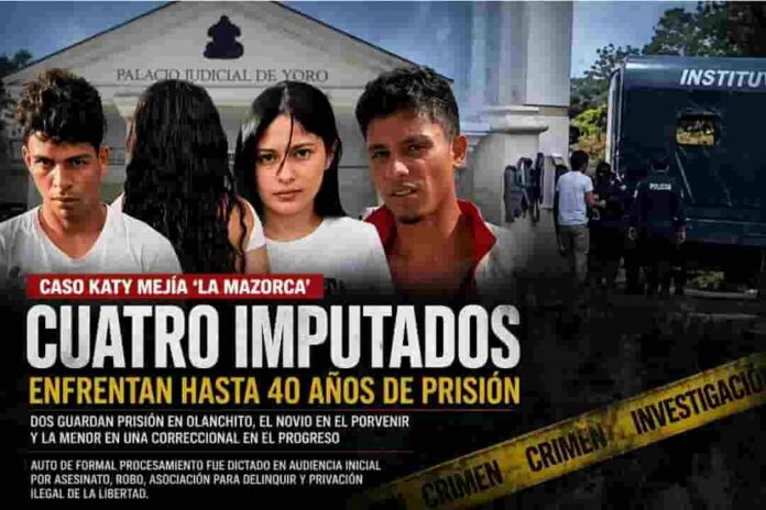 OLANCHITO, Yoro.— Cuatro personas señaladas por el asesinato de la joven creadora de contenido Katy Mejía, conocida como “La Mazorca”, podrían enfrentar penas de entre 35 y 40 años de prisión, luego de que un juez dictara auto de formal procesamiento por delitos considerados de alta gravedad en la legislación hondureña.