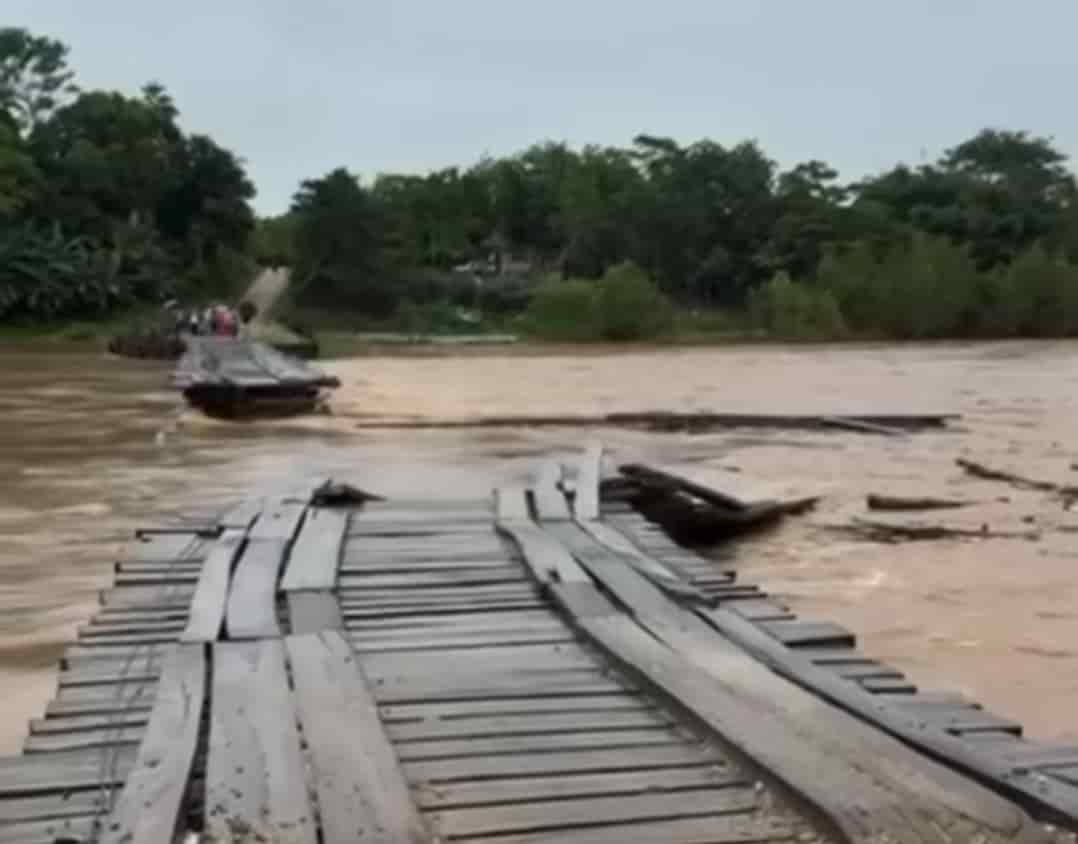 En la vía del sector Chilea hacia Arenal y los campos bananeros de Olanchito, el Río Aguan se ha desbordado, dejando fuera de servicio el puente de madera recién instalado.