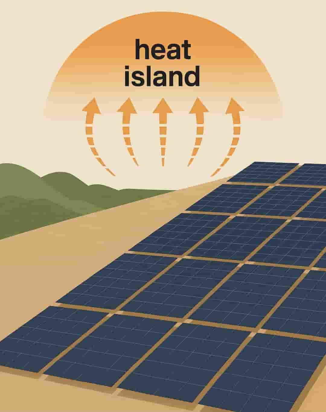 Los paneles solares absorben radiación solar durante todo el día. Parte de esa energía se convierte en electricidad, pero otra fracción se refleja o se libera como calor al entorno, elevando la temperatura del aire circundante.