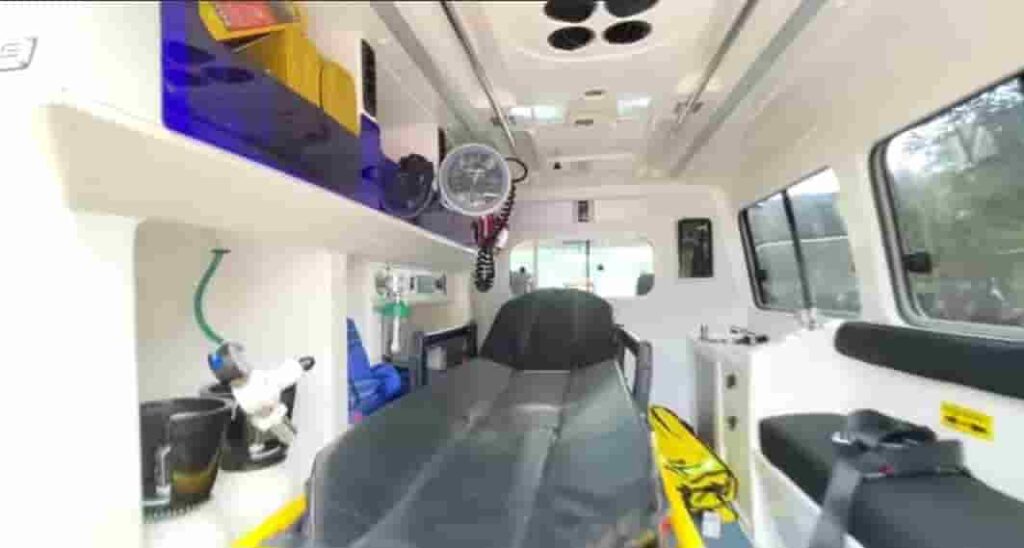 La camilla cuenta con todos los instrumentos de atención para emergencias en carreteras como en traslados de personas graves a xentros hospitalarios cercanos.