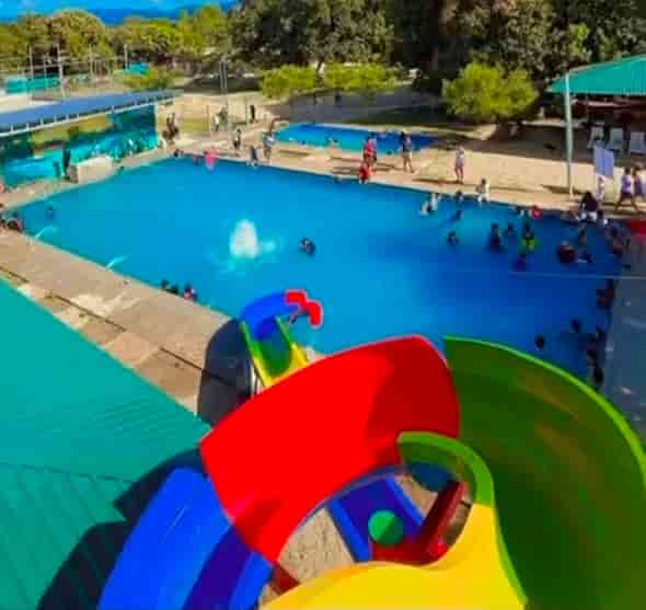 El lugar cuenta con piscinas, toboganes acuáticos, canchas de fútbol y voleibol, así como áreas destinadas para juegos infantiles y recorridos en cuatrimoto.