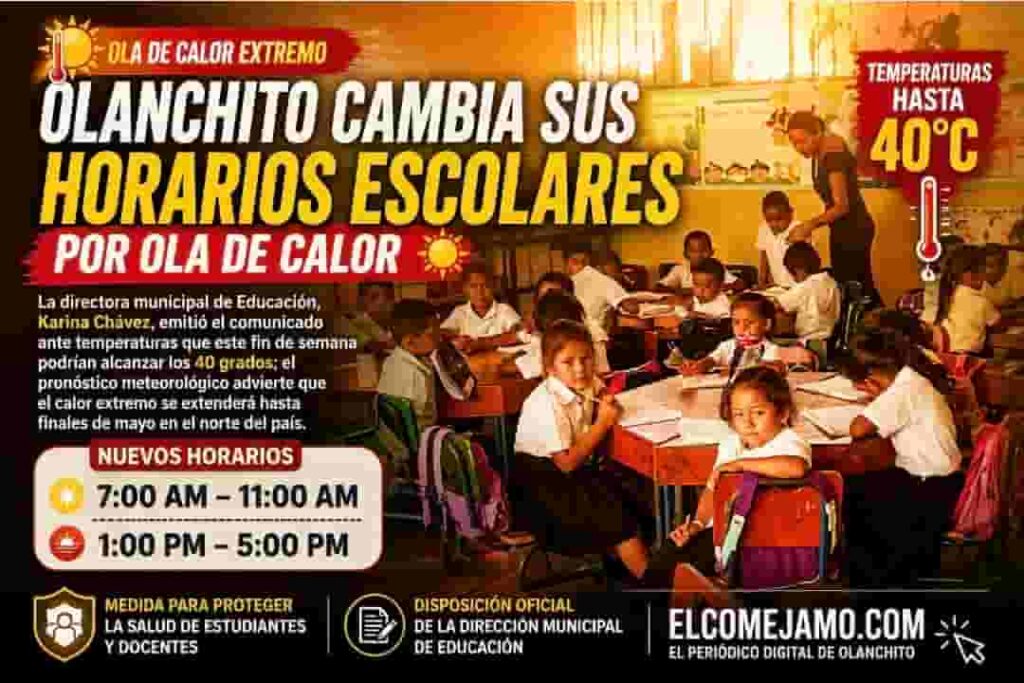 OLANCHITO, Yoro.— Las aulas de Olanchito tienen nuevos horarios. Desde esta semana, todos los centros educativos del municipio — prebásica, básica y media — comenzaron a operar en jornada reducida como medida de emergencia ante la ola de calor que castiga la ciudad cívica con temperaturas que este miércoles superaron los 36 grados Celsius y que el fin de semana podrían llegar hasta los 40 grados.