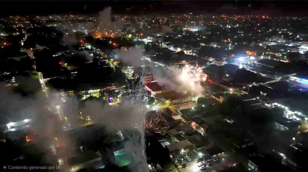 Desde distintos puntos de la ciudad, los destellos de los fuegos artificiales iluminaron el cielo, mientras el sonido de cohetes y luces chinas acompañó el ambiente festivo que se respiraba en barrios y colonias.
