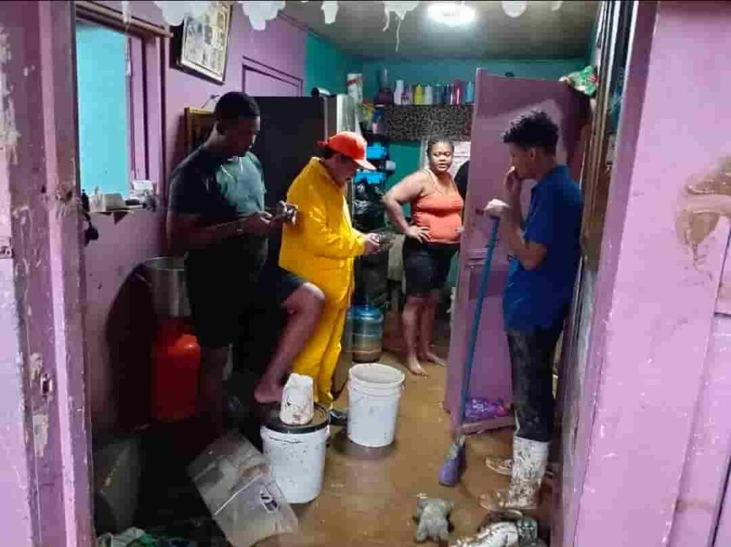 Desde tempranas horas de la mañana se reportaron viviendas inundadas en el sector de Coxen Hole, así como calles obstruidas por acumulación de agua y escombros, producto de fuertes vientos y lluvias persistentes que se extendieron por varias horas.
