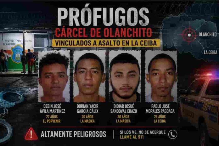 Los fugitivos fueron identificados como Debin José Ávila Martínez (27), originario de El Porvenir; Dorian Yacir García Cálix (20) y Didiar Josué Sandoval Erazo (30), ambos de La Masica; y Pablo José Morales Pagoaga (25), de La Ceiba.