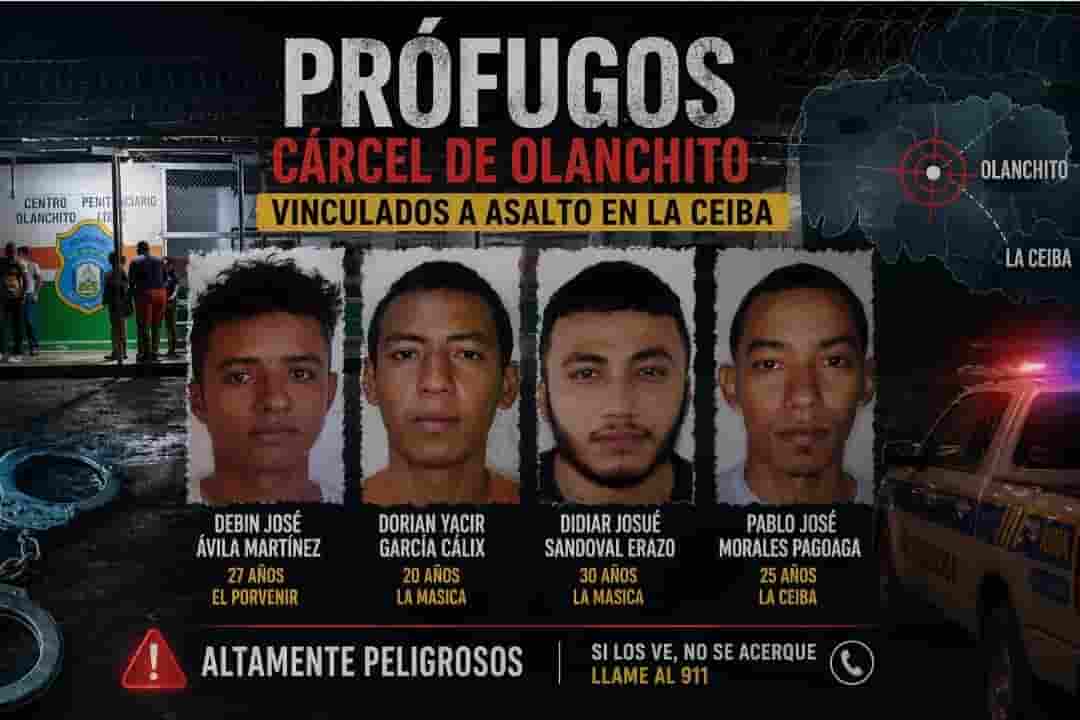 De acuerdo con los reportes oficiales, tras la fuga —que desató momentos de alta tensión en este municipio del norte de Honduras— uno de los reclusos fue recapturado pocas horas después, mientras que cuatro continúan prófugos, lo que ha obligado a desplegar un amplio dispositivo de búsqueda en distintos puntos de la región.