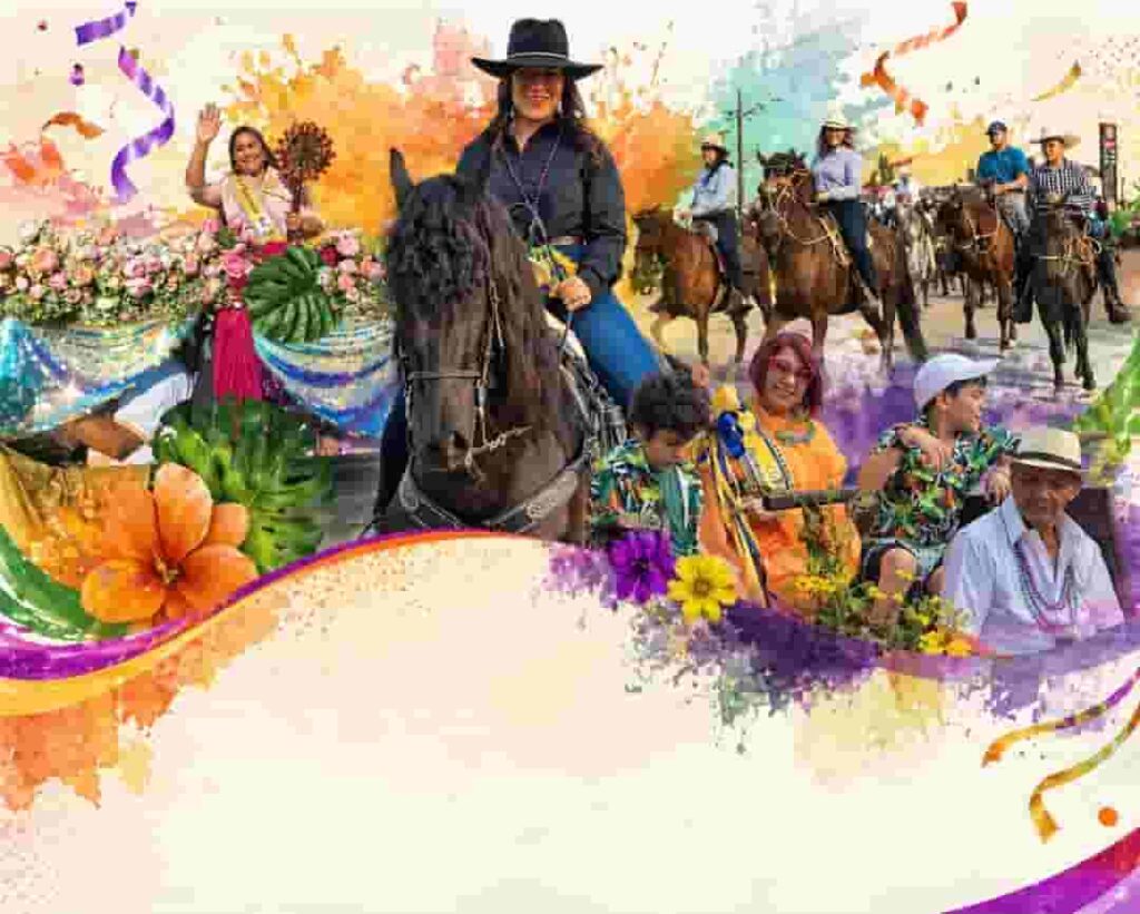 La agenda arranca oficialmente a las 2:00 de la tarde con la tradicional cabalgata hípica, una de las expresiones más esperadas por los pobladores, donde jinetes y caballos recorren las principales arterias en un desfile que mezcla elegancia y cultura.